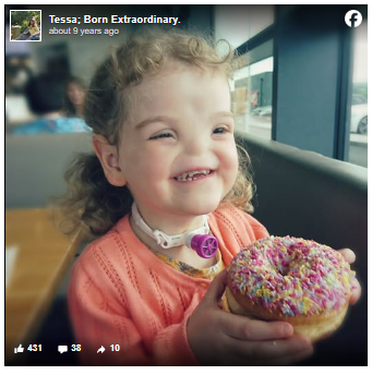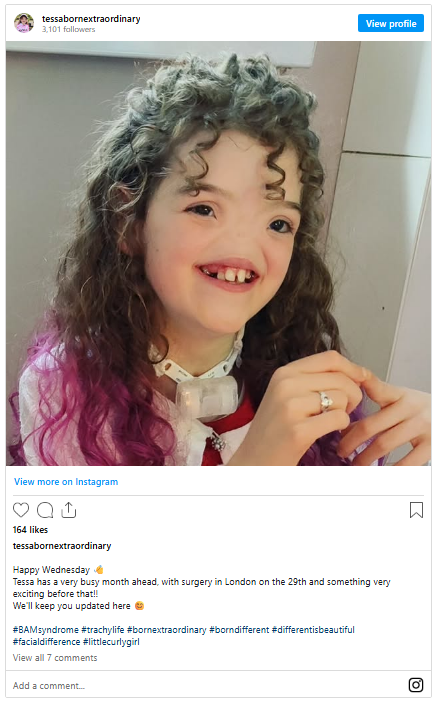 Tessa, whose condition is so rare that there are fewer than 100 cases worldwide, is praised by her mother for her “charming” personality and “infallible courage.”