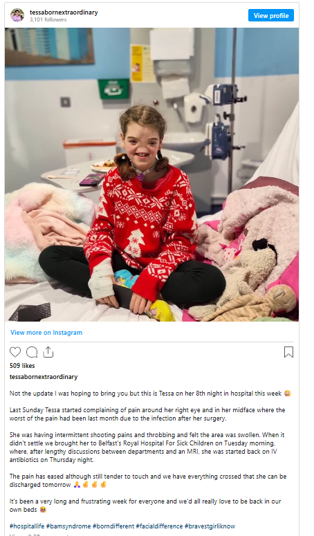 “It was an incredibly difficult decision for all of us, we love Tessa so much and thought she was completely beautiful the way she was,” Grainne said. “We ultimately decided to go ahead as it was a chance to gradually change her appearance over the years and to normalise her profile without ever cutting her face.”