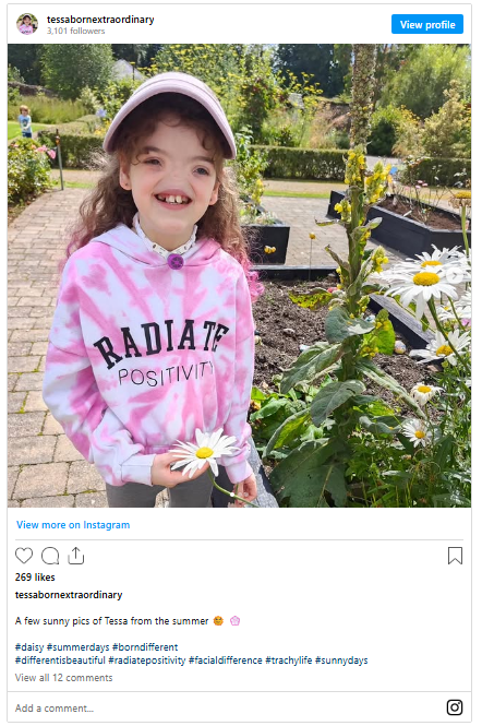 Tessa, from Maghera, Ireland, has Bosma arhinia microphthalmia syndrome (BAMS), meaning she was born without a nose. According to the National Institutes of Health, the condition is so rare that there are fewer than 100 cases reported in medical history.