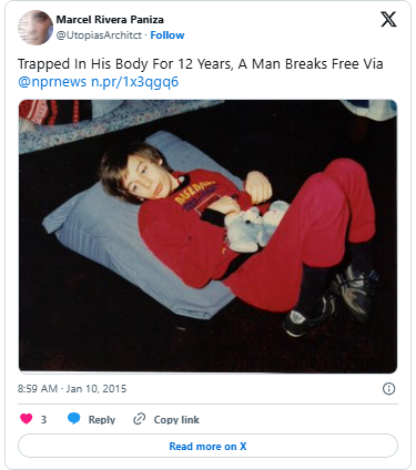 His parents bought him a computer with communication software and, after years of therapy, he was able to use it to write messages and operate a synthetic voice similar to the one made famous by theoretical physicist Stephen Hawking.