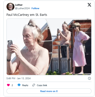 Sir Paul McCartney, the iconic singer who rose to fame with The Beatles, was recently seen sporting a man bun while vacationing with his wife, Nancy Shevell, in St. Barts.