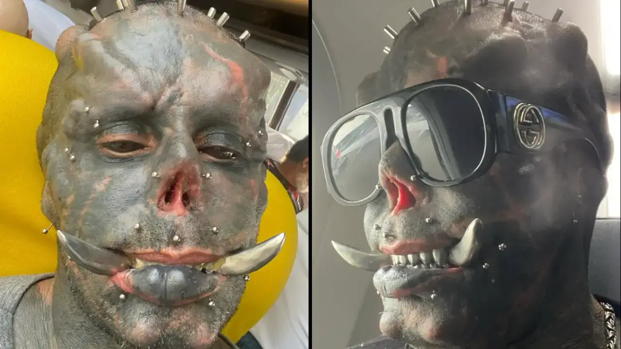 A body modification and tattoo enthusiast dubbed ‘Human Satan’ has shared unrecognizable pictures from before his transformation.