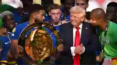 After Chelsea ended the game with a score of 3-0, Trump joined FIFA president Gianni Infantino to pick up the shiny trophy and carry it over to the team, including Chelsea captain Reece James.