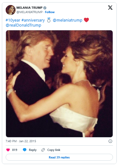 In January 2005, Melania married Donald in a lavish ceremony at Mar-a-Lago in Palm Beach, Florida, and the couple welcomed their first child, Barron, the following year in 2006.