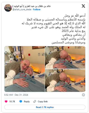 “I am pleased to inform you that [his] health condition is stable, and [he is] currently in intensive care,” he wrote on April 10, 2024 – a viral tweet that included a brief clip of his son the Sleeping Prince lying unconscious in his bed, the room decorated for the holiday Eid.