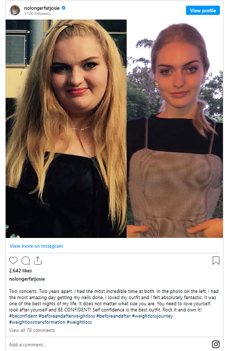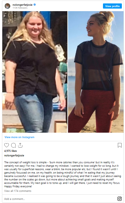 For Josie Desgrand, a teenager from Australia, it was Instagram. At just 16-years-old, Josie tipped the scales at 280Ibs and knew something had to give. Unhappy with her body, she was constantly reminded of how other girls looked as she scrolled through her Instagram feed and saw slim, attractive models smiling back at her.