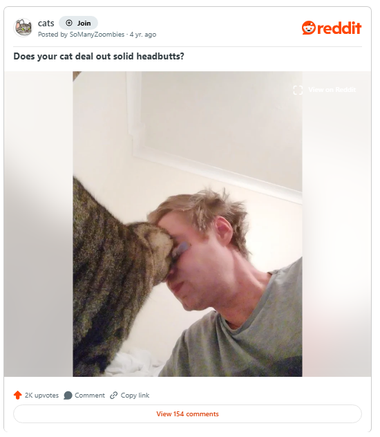 Got a cat that headbutts you? Drop a comment on our Facebook page and share the love!